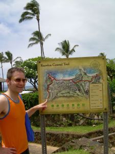 At the trailhead of Kapalua Coastal Trail