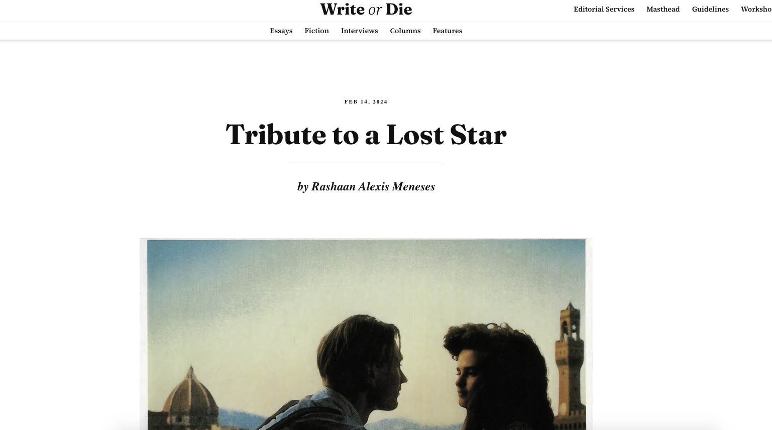 Cinematic crushes embody something intrinsic, some quality that resonates inside of us, maybe hidden and locked away, itching to be set free, and, at the same time, signifies qualities totally beyond us, the opposite of how we see ourselves or how others see us. Why couldn’t I have lighter skin? How could I coax my kinky curls into something like Helena Bonham Carter to catch the interest of someone like Julian Sands? The potency of films and books colors our imagination, and at the time, moving from a gangly, four-eyed mixed-race adolescent to a teenager coming into an awareness of body and self, I fell in love that Saturday evening, deeply in love on so many levels. My perspective forever tinted by the graces, the metaphysics, the pantheism of Forster come alive through Sands’ performance.